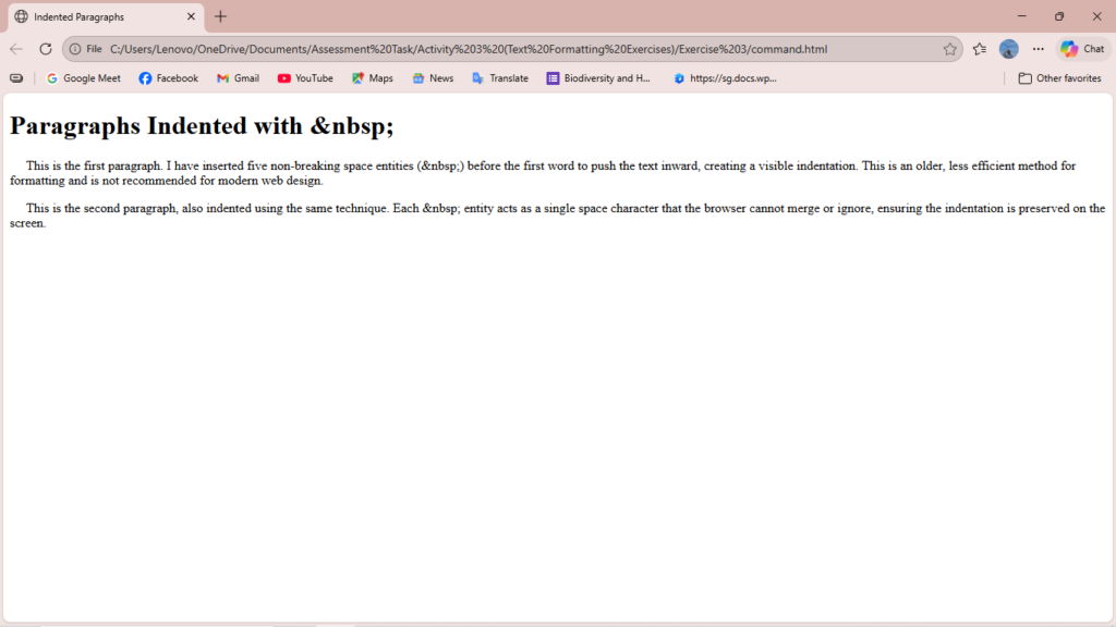 <h1>Paragraphs Indented with &nbsp;</h1>