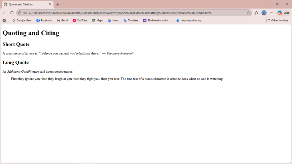 Exercise 7: Print a long quote and a short quote. Cite the author of each quote.