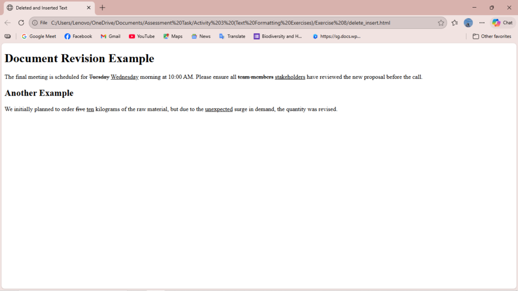 Exercise 8: Print some deleted and inserted text of your choosing.