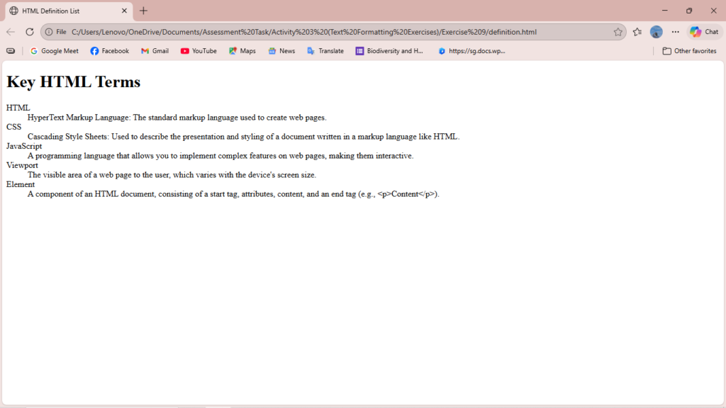 <dd>HyperText Markup Language: The standard markup language used to create web pages.</dd>