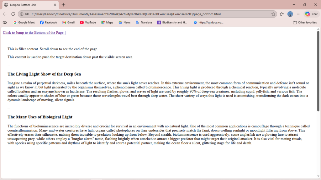 Exercise 3: Create a page with a link at the top of it that when clicked will jump all the way to the bottom of the page.