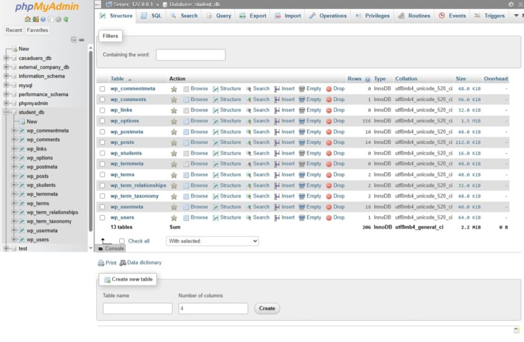 $table_name = $wpdb->prefix . 'students';